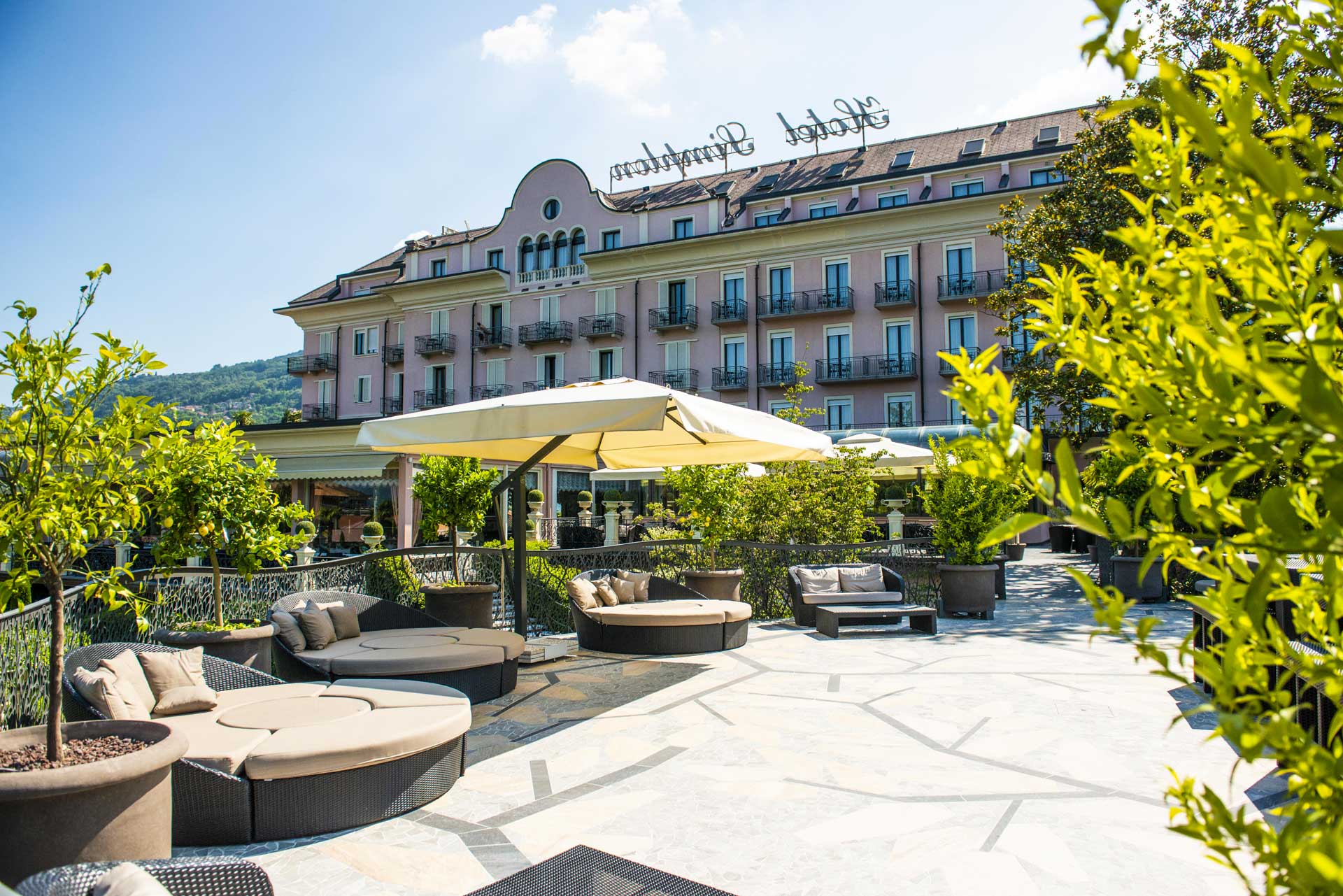 Literally surrounded by a centuries-old park, the Hotel Simplon stands out thanks to its pink facade recalling the color of the typical granite stone of the quarry of Baveno.